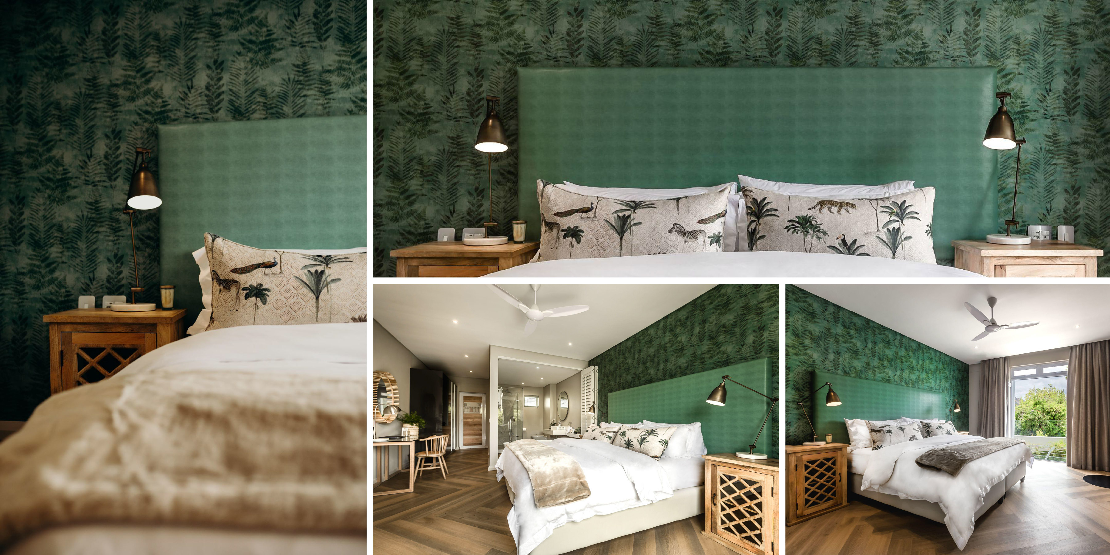 A seamless blend of nature and luxury, the Palm Room brings Franschhoek’s lush greenery indoors. With palm leaf patterns that seem to flow seamlessly into the surrounding landscape, this room lets you wake up to breathtaking valley views framed by a clear blue sky. A sultry, relaxing space where the beauty of the outdoors meets luxurious comfort.